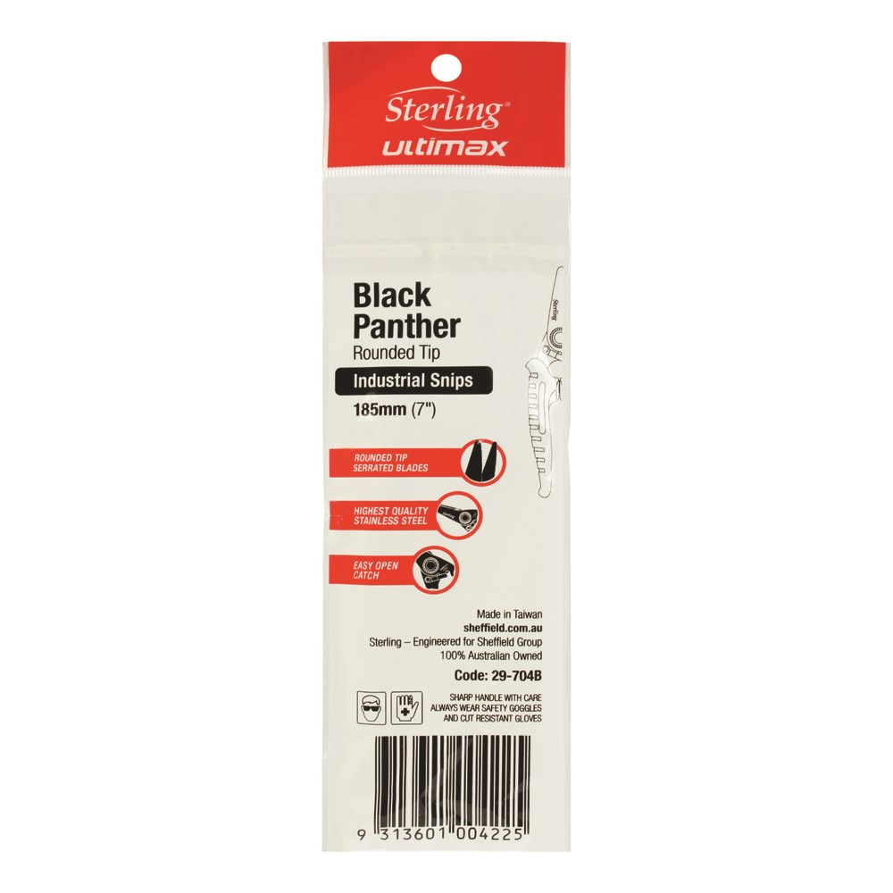 180mm Black Panther Industrial Snips: Round Points