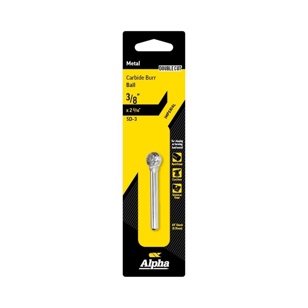 3/8in Ball Carbide Burr Carded