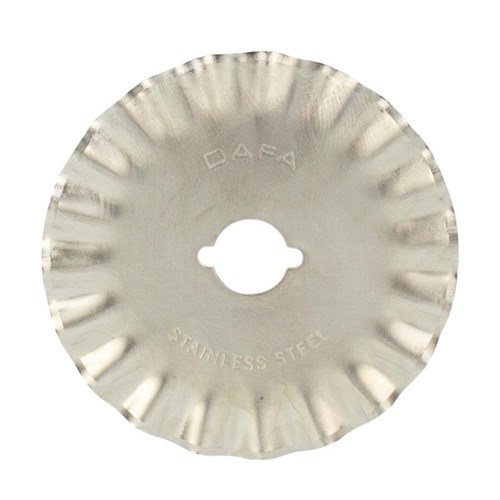 Circular rotary replacement pinking blade designed to place "teeth" on the edge of fabric to reduce raveling and to add a unique edge to any project. Very popular with crafts and memory book development. Also great for use with Polar Fleece! Good for general quilting, sewing and craft projects. Finish fabric edges in a snap. Reduces fraying. Can be used in industrial applications. This blade is made of stainless steel for sharpness and durability.